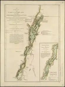 Durell, immobilisé par les glaces, prend du retard. Il appareille seulement le 5 mai avec 600 soldats[1]. Avec une armée de 11 000 hommes, Amherst quitte l'Hudson à la fin juin 1759, avant d'atteindre les forts Carillon et Saint-Frédéric, dont il s’empare. Il rebaptise le premier Ticondéroga. Puis, à proximité des ruines du fort Saint-Frédéric, il fait ériger le fort de Crown Point[10]. Amherst remonte ensuite le lac Champlain. Le commandant français Bourlamaque fait exploser le fort de l'île aux Noix le 26 juillet à l'approche du général Amherst[11].