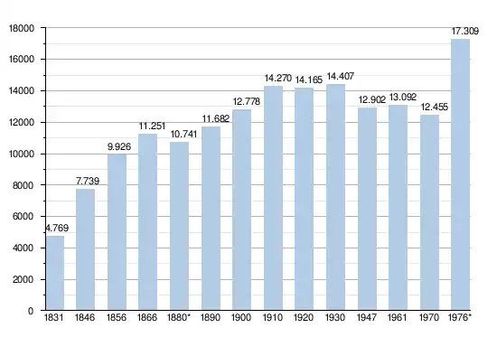 - Sources : INS, Rem. : 1831 jusqu'en 1970 = recensements, 1976 = nombre d'habitants au 31 décembre.