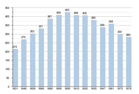 - Sources:INS, Rem:1831 jusqu'en 1970=recensements, 1976= nombre d'habitants au 31 décembre