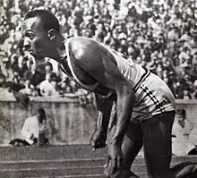 Le , à Chicago, Jesse Owens bat le record du monde du 100 m en 10 s 2[21]. Un mois et demi plus tard, aux Jeux olympiques d'été de 1936, qui se déroulent au stade olympique de Berlin, Owens remporte quatre médailles d'or, sous les yeux d'Adolf Hitler.