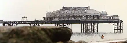 Fermée en 1975, la jetée ouest de Brighton s'est dégradée au fil des ans, les travaux de rénovation se faisant attendre. Le au cours d'une tempête, la passerelle reliant les deux blocs principaux s'effondre dans la mer puis le la salle de concert à son tour s'effondre partiellement. Le , le pavillon est en proie à un incendie que les pompiers sont impuissants à éteindre faute d'accès direct au bâtiment. Le , un deuxième incendie se déclare sur la gauche de la salle de concert. Le , des vents violents provoquent l'effondrement total de la salle de concert. Au printemps 2006, le West Pier Trust annonce un nouveau plan de restauration de la jetée ouest, associé à l'édification d'une tour d'observation de 183 m de haut nommée la Tour i360. Le dernier projet de reconstruction de la jetée étant donné son coût jugé trop élevé a été abandonné[2].