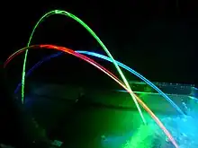 Les fontaines lumineuses exploitent la capacité de guider la lumière des jets d'eau, à la manière des fibres optiques