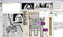 - la mise en page, « mise en scène » du texte, qui peut intégrer des éléments intra-diégétiques, comme des lettres ou coupures de journaux internes à l'univers fictionnel ; l'ouvrage peut se présenter lui-même comme un objet fictionnel, comme les manuels de D&D3 qui ressemblent à des grimoires.