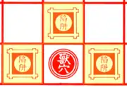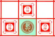 ![]() Un plateau classique du jeu du combat des animaux, sur lequel se trouvent les cases de départs, les tanières, les rivières et les pièges. |