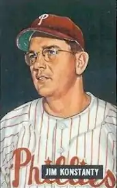 Surtout connu pour ses 7 années chez les Phillies de Philadelphie, avec qui il s'aligne de 1948 à 1954, Jim Konstanty devient en 1950 le premier lanceur de relève, et le seul à ce jour, à avoir remporté le prix du joueur par excellence de la saison dans la Ligue nationale.