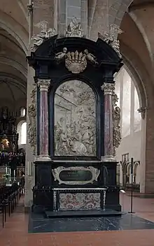 Portrait de l'évêque avec ses armoiries. Gravure de Leonhard Heckenauer, vers 1680. | ||||||||