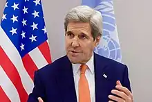 John Forbes Kerry, né le à Aurora (Colorado), est un homme politique américain, secrétaire d'État des États-Unis du au durant la présidence de Barack Obama.