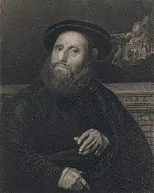 5. The Mirror of Literature, Amusement, and Instruction indique qu'il fréquente entre autres Érasme, Robert Estienne, Abraham Faber et Adrien Turnèbe.