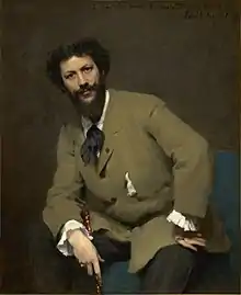 En 1879, Sargent peint le portrait de son maître Carolus-Duran ; son travail rencontre l'approbation générale et annonce la voie qu'il suivra. Son exposition au Salon de Paris est un hommage à son professeur et une vitrine qui lui assurera des commandes[15]. Henry James écrit à propos de cette œuvre de Sargent qu'elle offre le spectacle « un peu étrange » d'un talent qui au seuil de sa carrière n'a déjà plus rien à apprendre[16].