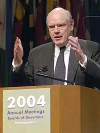 Donné partant par les spécialistes après la réélection de George W. Bush, il est contre toute attente maintenu à son poste de secrétaire du Trésor.