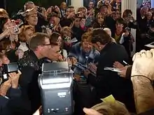 À partir du et jusqu'au , Johnny Hallyday s'installe pour trois mois au Zénith de Paris, (une durée de programmation jamais vue en Europe)[171]. Le chanteur apparaît dans un poing géant et articulé venu du fond de la scène pour s'ouvrir au-dessus du public. Hallyday interprète plusieurs inédits durant ce tour de chant aux accents très rock, mais où ballades et émotions sont néanmoins présentes, notamment avec la reprise de Ne me quitte pas de Jacques Brel. Johnny achève la première session de son Zénith le ; les représentations reprennent le . Le , à quelques minutes de la fin du show, Hallyday s'écroule sur scène, victime d'une syncope. Hospitalisé jusqu'au 12, il est contraint d'annuler toutes ses dates jusqu'au [172]. Le lendemain, Johnny Hallyday remonte sur scène pour les trois dernières dates. Ce spectacle demeure l'une des plus importantes productions et la plus « grosse machinerie » jamais mise en œuvre par l'artiste (Johnny Hallyday au Zénith).