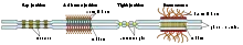 - les jonctions d'ancrage : elles peuvent être maculaires (macula adhérence = jonction sous forme de disque) ou zonulaires (zonula adhérence = ceinture d'adhérence). Elles assurent la cohérence mécanique des tissus animaux en unissant les cellules adjacentes entre elles.
