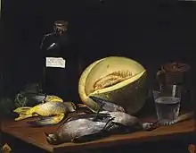 - Melón con uvas y pájaros muertos ou Bodegón con un melón y tordos (1807)[11]