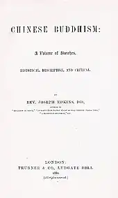 - Chinese Buddhism: a Volume of Sketches, Historical, Descriptive, and Critical, London 1880