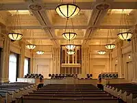 - Un grand hall historique, richement décoré à plusieurs étages, disposant d'une grande statue blanche de Joseph Smith, et un immense lustre en cristal. Des concerts de musique classique y sont souvent interprétés.