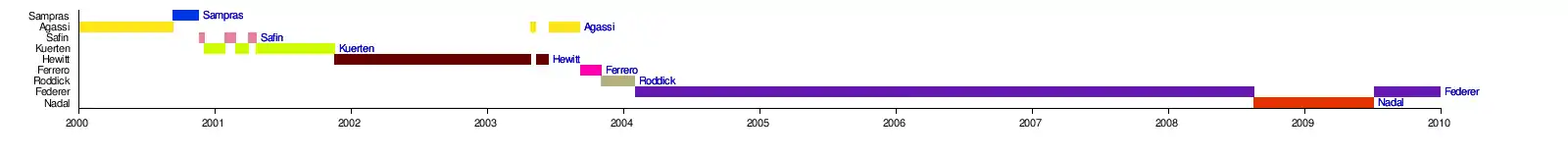 | Années | N° d'ordre | Joueur | Début | Fin | Semaines | Cumul |