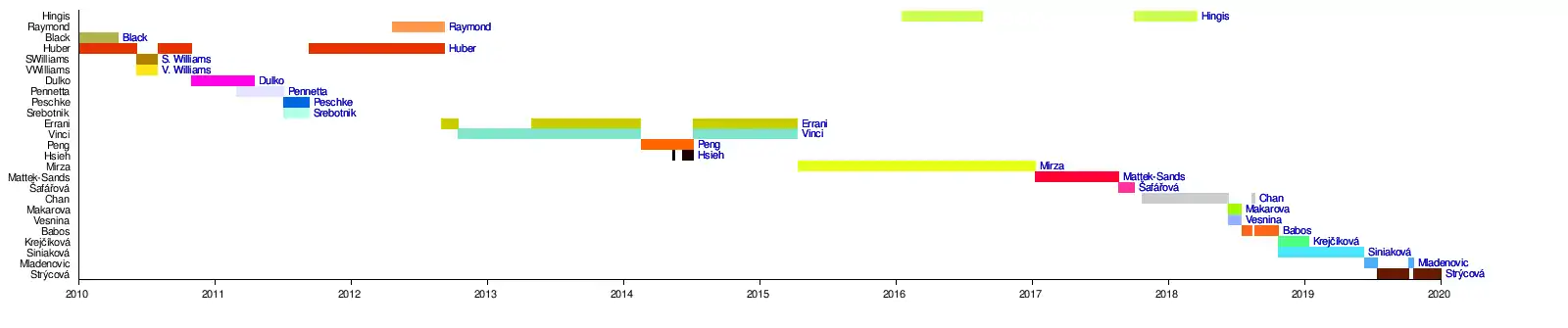 Par joueuseClassement des joueuses par nombre d'années auxquelles elles ont terminé numéro 1 au classement WTA :