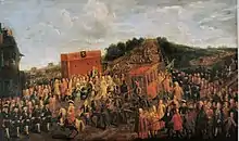 - Le prince Philippe d'Espagne à Bruxelles en 1549 accompagné de Charles Quint (perpétué chaque année par l'Ommegang[13])