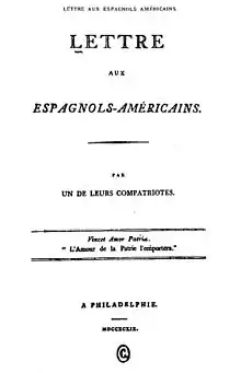 - Lettre aux Espagnols-Américains par un de leurs compatriotes, Philadelphie, 1799.