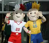 Les mascottes de l'Euro à Poznań.