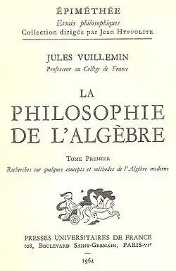 Une deuxième partie devait compléter la Philosophie de l'algèbre, mais n'a jamais été publiée ; en 1993, Vuillemin expliquera pourquoi dans la 2e édition de la Philosophie de l'algèbre.