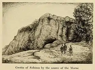 Sabinus quant à lui prend la fuite, simule un suicide et brûle sa maison. Il se cache ensuite dans une grotte que la tradition situe aux sources de la Marne.