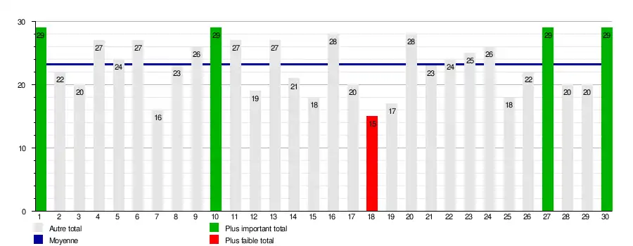 StatistiquesButs marqués par journéeCe graphique représente le nombre de buts marqués lors de chaque journée ![]() Classement des buteurs