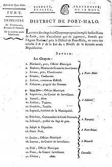 Les premiers jurys ont été instaurés en l'an II pour les Tribunaux criminels et les Tribunaux de district[réf. nécessaire]. Ils naissent avec la loi de 1791 et ne sont retenus que pour les affaires criminelles (et non civiles)[1]. Le groupe des jurés potentiels est défini par le cens des grands électeurs et leur désignation pour les procès est d'abord effectuée par le procureur général du département ou des représentants du gouvernement sous la Convention ; la sélection des jurés potentiels demeure opérée par une autorité administrative au XIXe siècle[1].