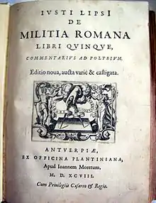 - (en) Justus Lipsius, De militia romana : libri V : commentarius ad Polybium, , 372 p. (lire en ligne).
