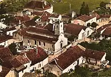 Carte postale de Juvancourt montrant une vue aérienne du village et de son église ainsi que deux photographies du "Batard"