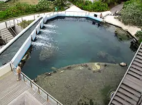 - L’espace « Découverte » reconstitue les habitats des tortues marines (plage de ponte et tombant de récif). Les visiteurs peuvent voir les tortues hébergées dans un bassin de 500 000 litres à ciel ouvert alimenté par la mer, et les observer ensuite dans un panorama sous-marin à travers une vitre courbe de 20 m2 constituant une des parois de l’aquarium. On peut y voir aussi des poissons dont les larves ont passé le barrage des filtres, et qui participent de la création d'un biotope. Six tortues de quatre espèces différentes évoluent dans le bassin. Le public peut aussi voir sans les approcher les tortues dans certains bacs du centre de soins disposés à cette fin.