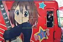Portail de Yui Hirasawa sur un train de la compagnie Keihan Electric Railway en 2011 à Ōtsu.