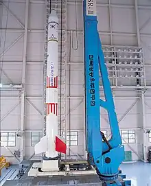 La Corée du Sud adhère en 2001 au Régime de contrôle de la technologie des missiles visant à limiter la prolifération des armes de destruction massive en contrôlant les transferts des missiles pouvant servir de vecteur pour ces armes. Son adhésion lui permet de négocier avec d'autres pays l'importation des technologies sensibles lui permettant de développer un lanceur national[5]. En novembre 2002, elle lance pour la première fois sa fusée-sonde KSR-III. L'objectif est de disposer vers 2005 d'un lanceur opérationnel capable de placer de petits satellites en orbite. Celui-ci doit comporter trois étages développés à partir de KSR-III flanqués de deux propulseurs d'appoint également dérivés de la même fusée-sonde. Le troisième étage est à propergol solide et dérive de la fusée sonde KSR-I. Finalement cette approche est abandonnée au profit d'un nouveau projet baptisé KSLV-1 (futur Naro-1). Pour accélérer le développement de ce dernier, les responsables coréens décident d'avoir recours à l'assistance technique de la Russie pour développer cette fusée[6].