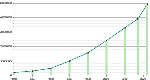 Depuis 1950, l'évolution de la population de Kaboul a été :
