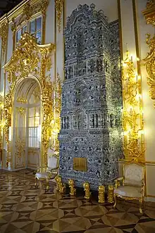 - l'authentique grundkachelofen (de) entièrement maçonné et chauffant par rayonnement