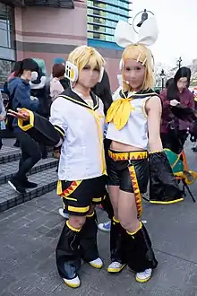 - (en) Cet article est partiellement ou en totalité issu de l’article de Wikipédia en anglais intitulé « Kagamine Rin/Len » (voir la liste des auteurs).