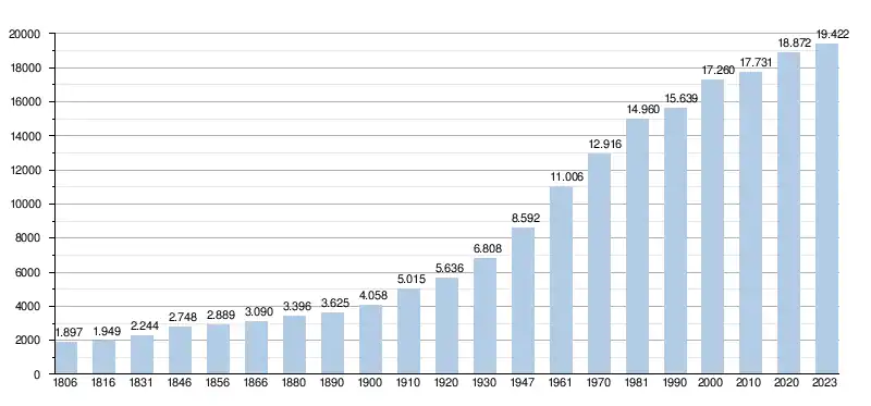 - Source : DGS - Remarque: 1806 jusqu'à 1981=recensement; depuis 1990=nombre d'habitants chaque 1er janvier[9],[10]
