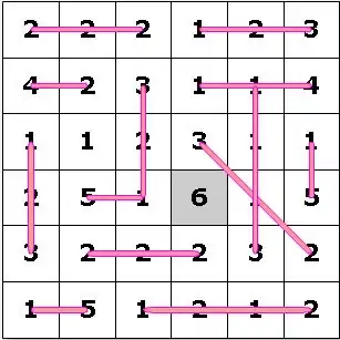 - reparcourez votre grille en remplaçant toutes les cases où les lignes se croisent par le chiffre 1 ;