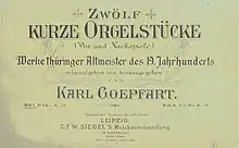 Page de titre de Douze courts morceaux d'orgue (trad.), publié par Karl Goepfart