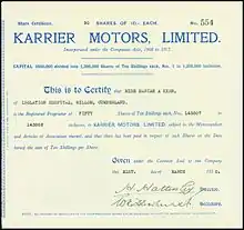 Herbert Fitzroy Clayton (1857-1935), un fabricant de produits chimiques prospère ou drysalter et dyer[1],[2], créa en une société, Clayton & Co Huddersfield Limited, regroupant les affaires d'ingénierie qu'il avait portées de manière indépendante depuis 1899[note 1] quand il quitta Dixon Clayton & Co dans laquelle il était partenaire[3]. En 1908[4], rejoint par son deuxième fils, Reginald Fitzroy Clayton MIAE (1885-1964), Clayton & Co a commencé à concevoir et fabriquer des véhicules et charabancs Karrier à moteur à essence, qui est devenue leur principale activité. En 1920[5], en gardant Clayton & Co Penistone séparée et en conservant le contrôle de cette nouvelle société[6], Clayton & Co Huddersfield a été vendue à une société publique nouvellement constituée qu'ils nommèrent Karrier Motors Limited. À ce moment, les produits étaient: