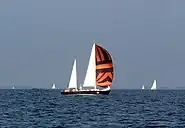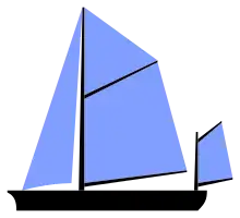 ![]() Le Mentor, un dériveur école gréé en ketch marconi. |