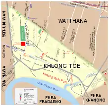 Dans ce khet se trouve le port de Bangkok et, à proximité, le vaste bidonville de Khlong Toei[1],[2]. où vivent près de 120 000 personnes[3],[4] dans environ 20 000 habitations de fortune[5].