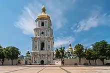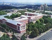 ![]() ![]() ![]() ![]() ![]() ![]() De haut en bas, gauche-droite : le palais Mariinsky, la laure des Grottes, le bâtiment rouge de l'université nationale, la maison aux Chimères, la cathédrale Sainte-Sophie, la place de l'Indépendance. |