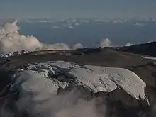 Cette calotte était autrefois clairement visible, mais elle est désormais en phase de retrait rapide[15]. Elle couvrait une superficie de 12,1 km2 en 1912, 6,7 km2 en 1953, 4,2 km2 en 1976 et 3,3 km2 en 1996. Au cours du XXe siècle, elle a perdu 82 % de sa superficie[14]. Elle a perdu en moyenne 17 mètres d'épaisseur entre 1962 et 2000[16]. Elle est de plus en plus ténue, en particulier sur le versant septentrional, où le retrait est plus prononcé, avec environ 30 % de perte en volume et en surface depuis le début du siècle, si bien que le glacier Credner s'est totalement détaché du champ de glace Nord en 2012 et devrait disparaître en 2030[17], suivi entre 2040 et 2045, au rythme actuel, par les autres glaciers septentrionaux et sommitaux[17],[18]. La glace sur le versant méridional pourrait perdurer quelques années supplémentaires en raison de conditions climatiques locales différentes[18]. La situation actuelle serait comparable à celle présente il y a 11 000 ans d'après des carottages de glace[16].