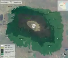 Au total, le volume émis par ce paléo-volcan pourrait représenter près des deux tiers du volume actuel[14].