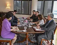- Luke Vargas, « Pompeo touts progress toward 'expected' North Korea summit », sur Talk Media News, (consulté le )