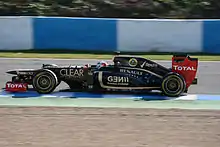 Le , bien que convoité par Williams, Kimi Räikkönen signe un contrat d'un an avec Lotus F1 Team pour 2012, plus une option pour 2013[9]. Il est aligné aux côtés du Français Romain Grosjean. Le 23 et , à l'occasion de deux séances d'essais à Valence pour retrouver ses marques, il pilote une monoplace de Formule 1 pour la première fois depuis le Grand Prix d'Abou Dabi 2009.