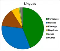 Jusqu'en 1940, l'écrasante majorité de la population parlait le kisetogo ou le nagakala, des langues basées sur la famille linguistique bantoue. Cependant, à partir de 1940, la langue française a également commencé à être présente dans la localité. En 1975, avec le Portugal quittant ses colonies africaines et avec l'indépendance de l'Angola, des dizaines d'émigrants angolais ont émigré à Kisenge. Ainsi, au cours des dernières décennies, la langue portugaise a été assimilée par la population et près de la moitié de la population parle déjà couramment le portugais et comme première langue. Un autre facteur expliquant le nombre croissant de lusophones dans le village est l'important investissement du Brésil et de l'Angola et, dans une moindre mesure, du Portugal[2].