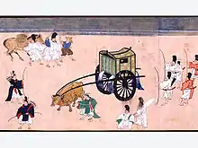| Rouleau 6 | Section 4 | L’empereur Daigo entre en religion. Des courtisans et soldats vaquent dans la cour ou le palais, puis la scène montre l’empereur se faisant raser. | SNEZ, p. 14, ZNE, p. 30-31 |