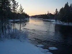 Elle traverse ensuite le parc national d'Oulanka avant de se jeter dans l'Oulankajoki quelques kilomètres avant la frontière russe. Dans le parc national, la rivière a plusieurs rapides et cascades, dont Myllykoski et Jyrävä.